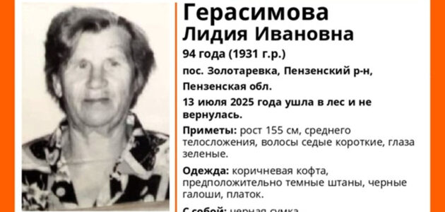 Поиски 94-летней Лидии Герасимовой в поселке Золотаревка завершены успешно. Напомним, что 13 июля женщина ушла и в лес и не вернулась. О том, что пропавшую нашли, … russia58.tv »